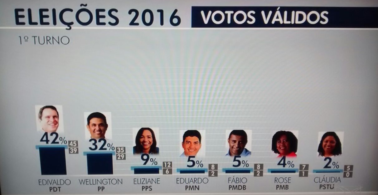 Na eleição para prefeito de São Luís em 2016, o Ibope apontou que, a quatro dias do pleito, Edivaldo Holanda Júnior tinha 42% e iria para o segundo turno com Wellington do Curso que pontuava com 32% das intenções de voto. Ao abrir as urnas o resultado foi Edivaldo com 45.66% e Eduardo Braide com 21.34%.