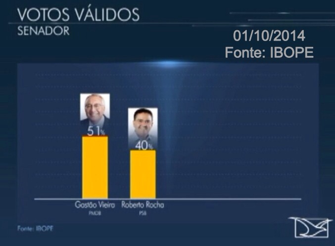 Para o Senado também não foi diferente. O IBOPE na última pesquisa indicava que Gastão Vieira seria eleito com 51% dos votos contra 40% de Roberto Rocha. O resultado foi totalmente inverso: Rocha foi eleito senador com 51,54% contra 44,48% de Gastão.